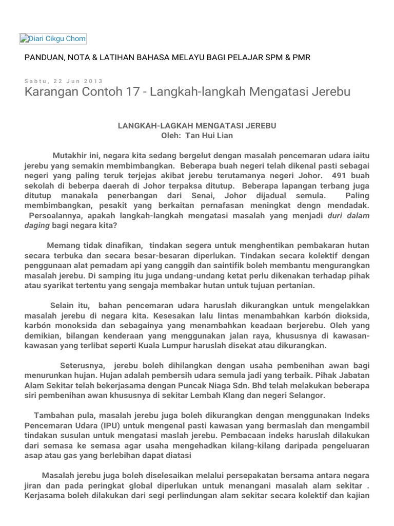 Diari Cikgu Chom Karangan Contoh 17 Langkah Langkah Mengatasi Jerebu Pdf